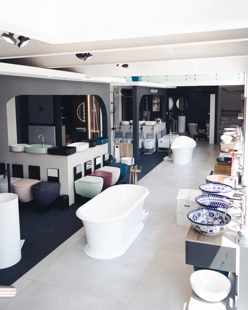 Firma WODNY ŚWIAT oferuje kompleksowe rozwiązania dla Twojej łazienki. Specjalizujemy się w wysokiej jakości armaturze łazienkowej i meblach, które stanowią trwałą inwestycję na lata. Nasze produkty są starannie wyselekcjonowane, zapewniając najwyższą satysfakcję naszym klientom.Nasz salon przy ul. Bartyckiej 24/26 pawilon 200 w Warszawie to miejsce, gdzie możesz zobaczyć mnóstwo aranżacji łazienek. To jeden z największych salonów w Polsce oferujący asortyment łazienkowy. Nasze zalety :